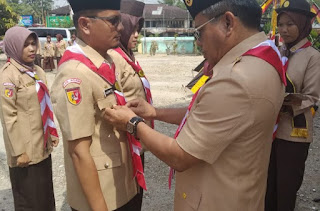 Lubukbasung,Canangnews---- Ketua Harian Kwartir Cabang Pramuka Agam Martias Wanto melantik pengurus Majelis Pembimbing Ranting Pramuka Kecamatan Lubuk Basung masa bakti 2018-2021, Kamis (18/7) di halaman kantor Camat Lubuk Basung.